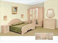 | Спальня «Эмилия» (глянец). Производится в цвете: перламутр. В комплект для спальни входят: кровать, комод, зеркало, шкаф, тумба прикроватная (2 шт.), туалетный столик. Корпус – ДСП. Фасад – МДФ. |