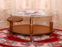 | Интересный журнальный стол с применением стекла - стеклянные вставки как бы зрительно увеличивают объем стола, хотя его размеры остаются прежними,кроме того, такой стол выглядит более утонченным.Если под такой журнальный столик поставить лампу с разноцветным или матовым освещением, то стол будет, как будто светиться. Опора стола - брус деревянный, крышка и полка изготовлены из плиты МДФ, облицованной натуральным дубовым шпоном, столешница из стекла. Размеры : 900*590*490 |