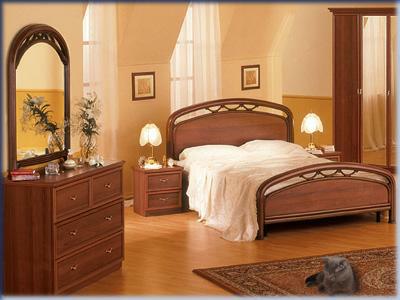 При изготовлении мебели для спальни используется ДСП, ДВП, крепежная фурнитура, кромочные материалы производства Германии, Италии. Во всех изделиях двери украшены декоративной обкладкой из массива.