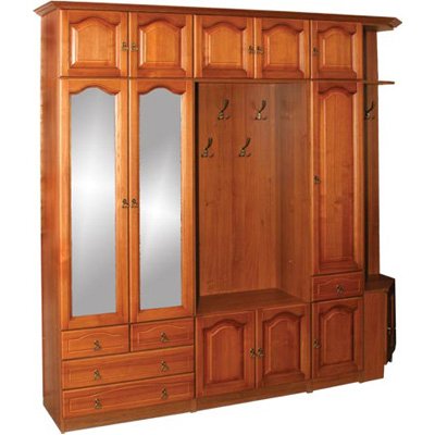 Экономичный гарнитур мебели для оформления прихожей. Подойдет как для квартиры, так и для баз отдыха, гостиниц. Варианты цветов: ольха, орех, махонь, дуб, бук.